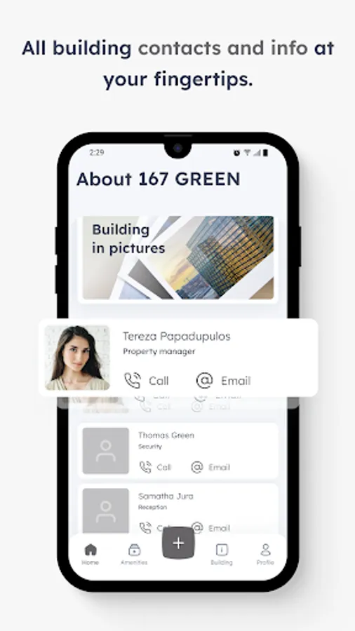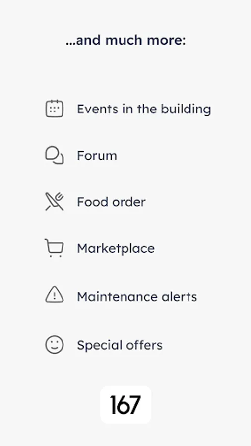 This application is intended not only for employees that work in 167 GREEN but for their visitors as well. Important information about the building is organized on the dashboard, which dynamically changes throughout the day. The app allows employees frictionless access into the property and will enable them to invite guests to the property as well. The app offers more functionality including forums, ability to request maintenance, events, information about companies in the building and about the building itself where you can find important contact, guides and documents.