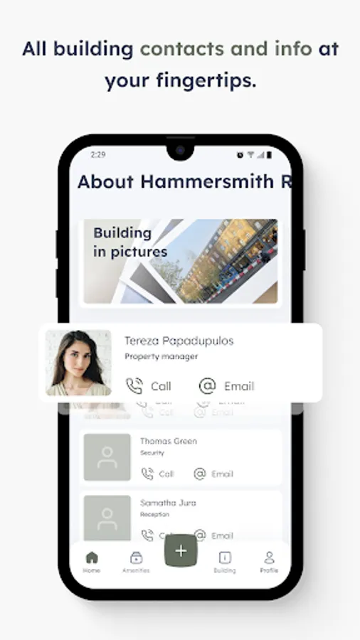 This application is intended not only for employees that work in 99 - 119 Hammersmith Road but for their visitors as well. Important information about the building is organized on the dashboard, which dynamically changes throughout the day. The app allows employees frictionless access into the property and will enable them to invite guests to the property as well. The app offers more functionality including forums, ability to request maintenance, events, information about companies in the building and about the building itself where you can find important contact, guides and documents.