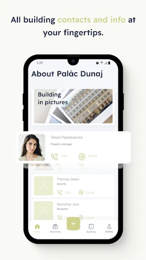 This application is intended not only for employees that work in Palac Dunaj but for their visitors as well. Important information about the building is organized on the dashboard, which dynamically changes throughout the day. The app offers more functionality including forums, ability to request maintenance, events, information about companies in the building and about the building itself where you can find important contact, guides and documents.