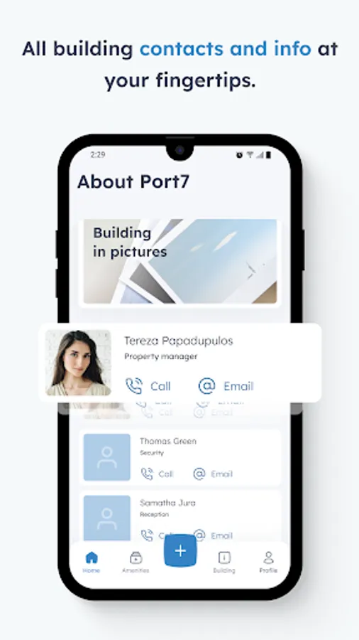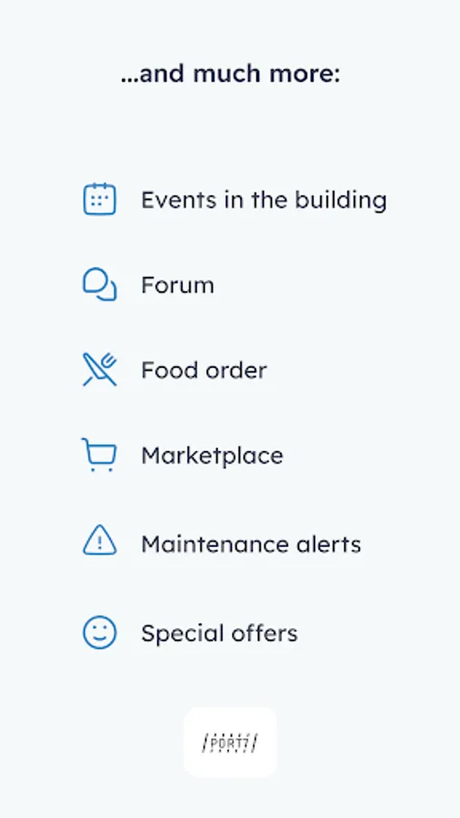 This application is intended not only for employees that work in Port7 but for their visitors as well. Important information about the building is organized on the dashboard, which dynamically changes throughout the day. The app offers more functionality including forums, ability to request maintenance, events, information about companies in the building and about the building itself where you can find important contact, guides and documents.