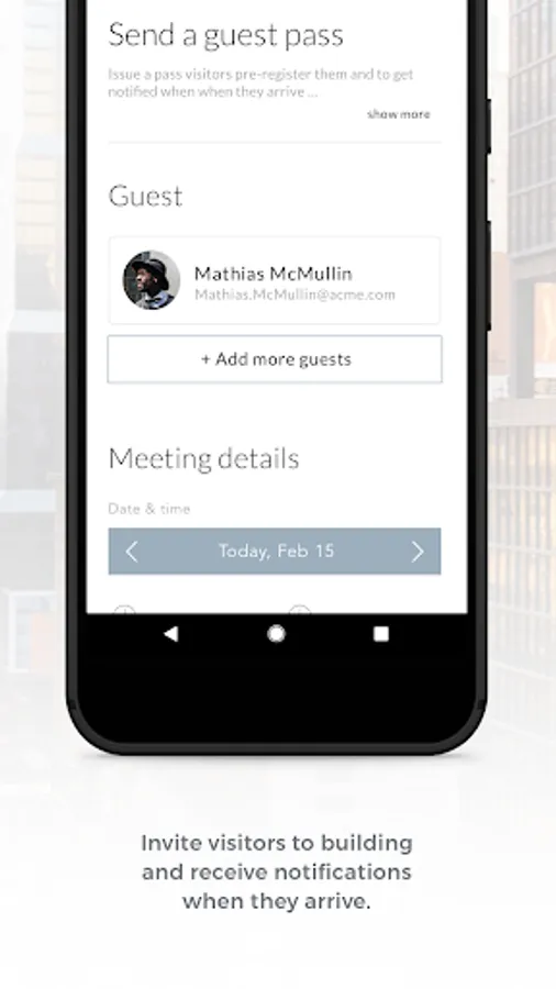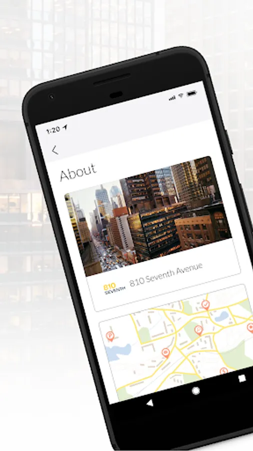 This application is intended for employees that work in 810 Seventh Avenue and their visitors. Important information about the building can be found on the dashboard, which dynamically changes throughout the day. The app allows employees frictionless access into the property and will enable them to invite guests to the property as well. Additional modules are available including, amenity reservations, events, community information, etc.