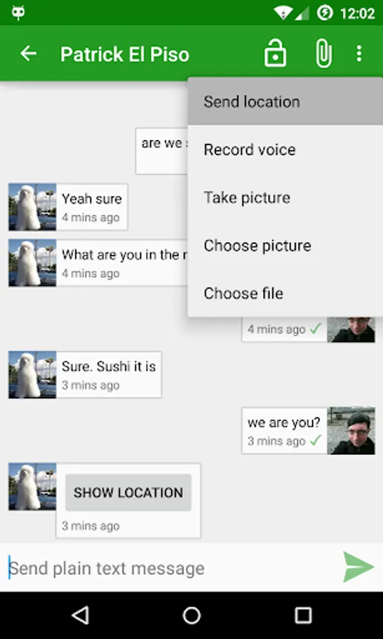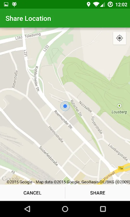 show a Send location in the attach menu. (Next to Choose picture, Take picture and Choose file)