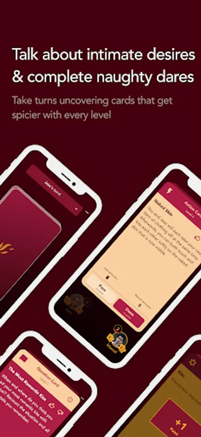* Over 450 unique cards: answer intimate questions, complete naughty dares and collect romantic and erotic cards