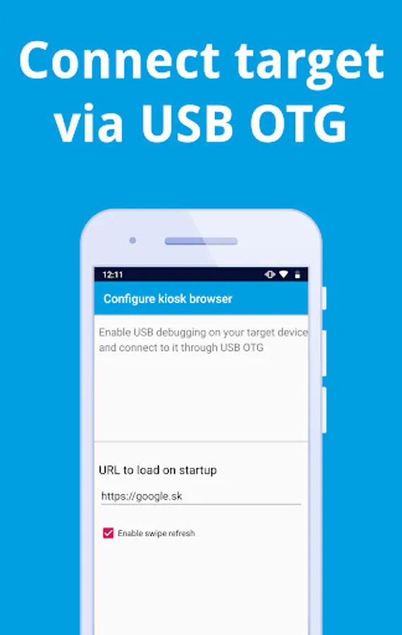 1.) Enable developer options and USB debugging on your target device (the device where you want to install the kiosk browser)