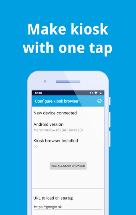 This app allows you to install and configure kiosk browser with locked screen into your other dedicated Android devices.
