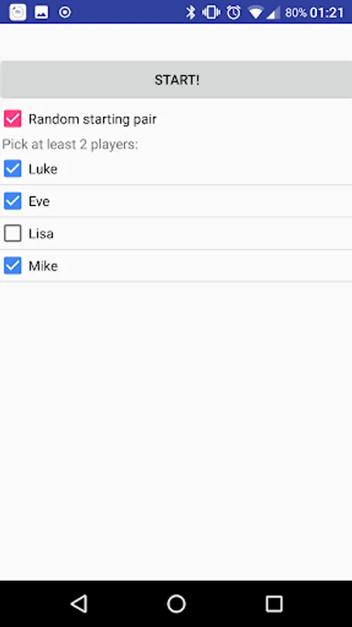 This app helps you organize small tournaments played on a single table, where only two players can play at once – for example billiards, snooker, or table tennis.