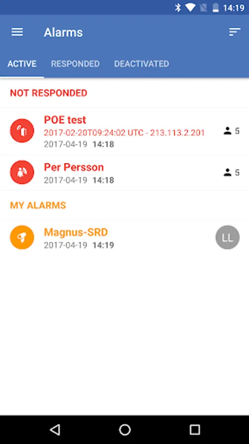 The Skyresponse:mobile app enables rapid and efficient event handling with alarms being sent directly to the person who can take action, without involving a response centre. Each respondent sees all incoming events/alarms as a list in his mobile phone, with both map and navigation support. This is a safe, simple and cost efficient approach, for example when it is natural that colleagues takes the first action on an alarm.