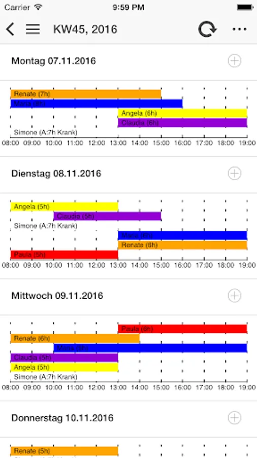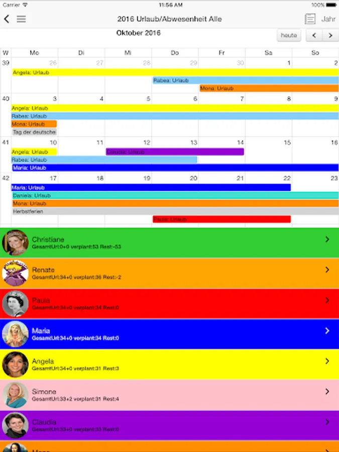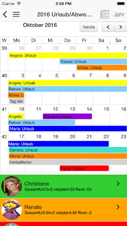 Invite your team members to use the team plan. Distribute permissions to access the different features. Team members can use the TeamPlan app to plan their planned events at any time