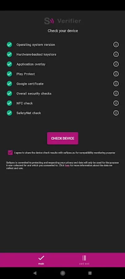 Download this app to check if your mobile device is compatible and meets the requirements to use the SoftPos app.