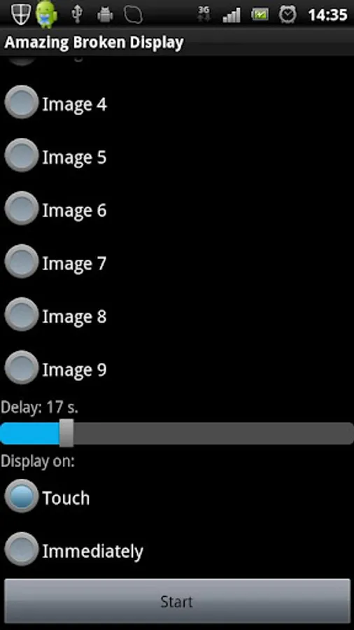 Go ahead, start the amazing broken display, select the crack image you would like to use and fool your friends.