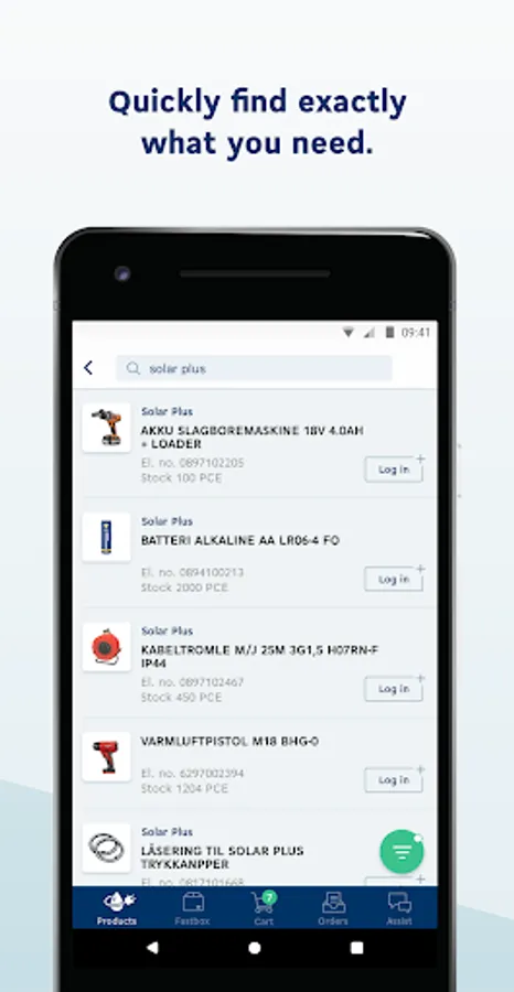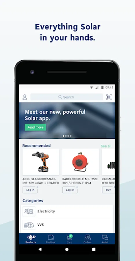With Solar Mobile you will easily find what you need to buy. The improved filtering options make it easier to find the right products. Add your favourite service center in the app and pick up your order locally - or get it delivered as a Fastbox. If you don't have the time to complete your order right away, you may save it as a draft and open it later - either through the app or from the web shop. If you happened to get the wrong product you can quickly create a return order using the app.