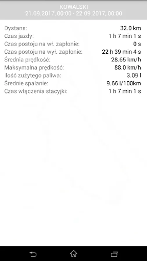 History of traveled routes is displayed on the map Open Street Map. Select the vehicle you are interested in and specify the time period that you want to verify. Appears on the map route with marked stops. Additionally, you can view a summary containing overcome distance, driving time and total time stops, fuel used and average fuel consumption and average and maximum speeds.