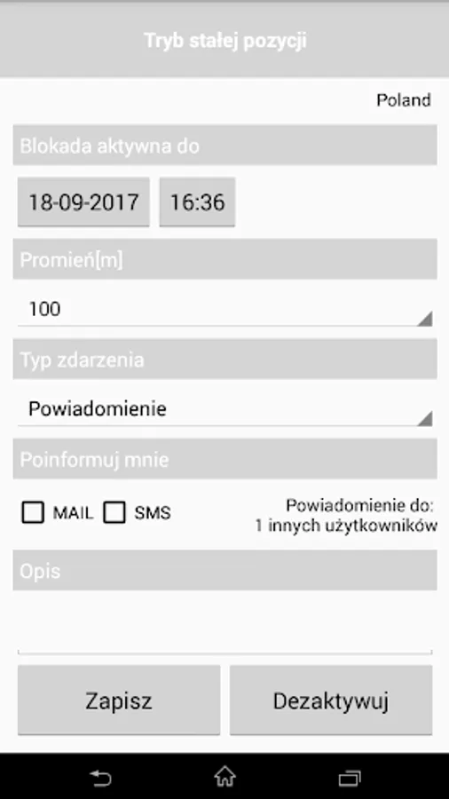 Permanent Position mode you - just select the vehicle, point to secure the area and check the lock time activity. When motion is detected you will be notified, depending on your choice via SMS or e-mail.