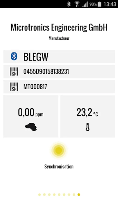 GasBuster connects with all BLE gas sensors within your reach and displays the measured values (gas concentration and temperature) as well as vendor ID and serial number of these sensors. If there is a connection between the gas sensor and your smart phone the Bluetooth icon turns blue. With the wiping function you can jump between the individual gas sensors back and forth. The dots indicate the amount of gas sensors that are connected. When a gas sensor loses the connection the screen after 15 seconds switches to the next sensor or the home screen is displayed when no other sensors are connected. GasBuster is compatible with all gas sensors from Microtronics.