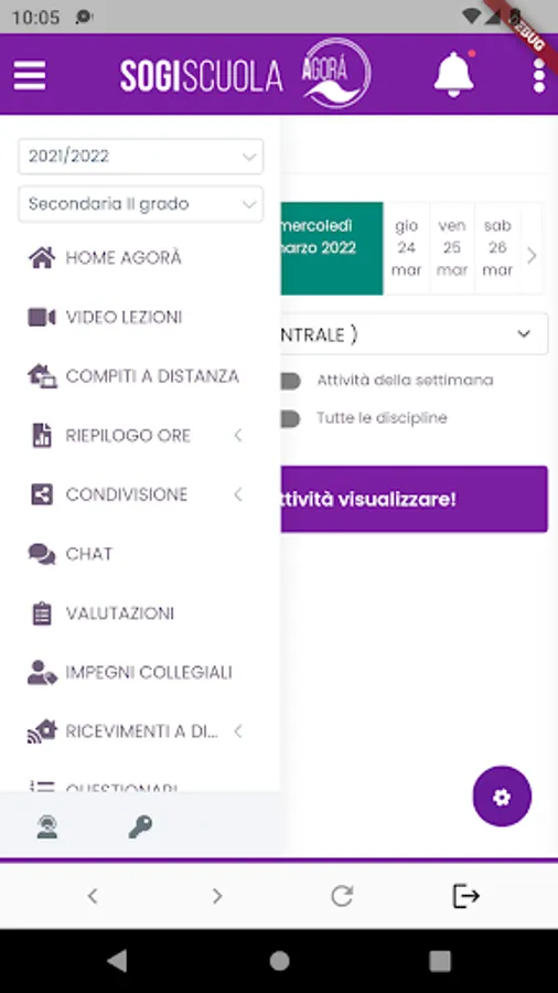 Inside the app you will find all the AGORA functions; videolessons, remote assignments, remote use, upside-down class, assessments, scrutinies, faculty, subject department, chat, interviews.