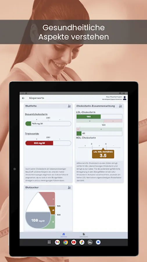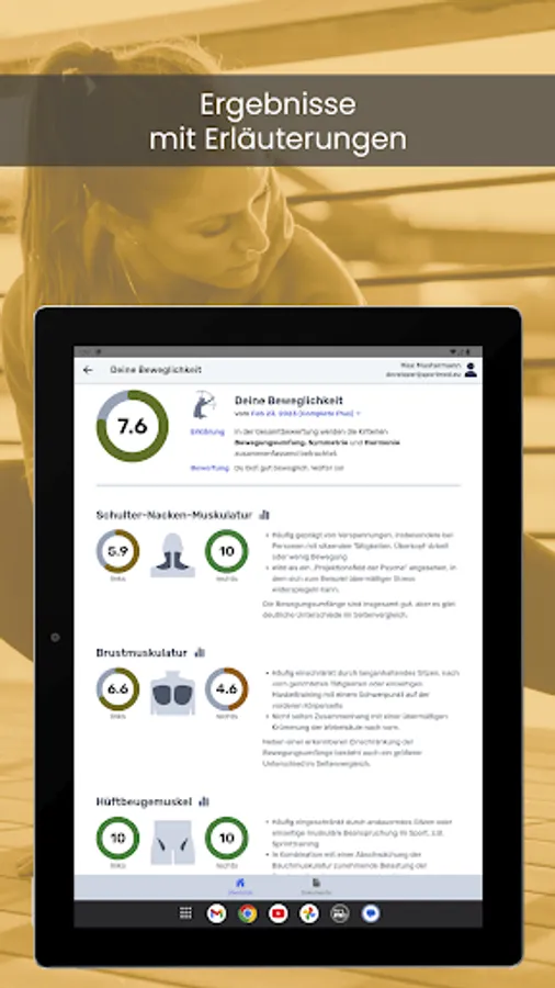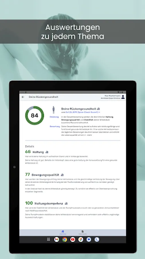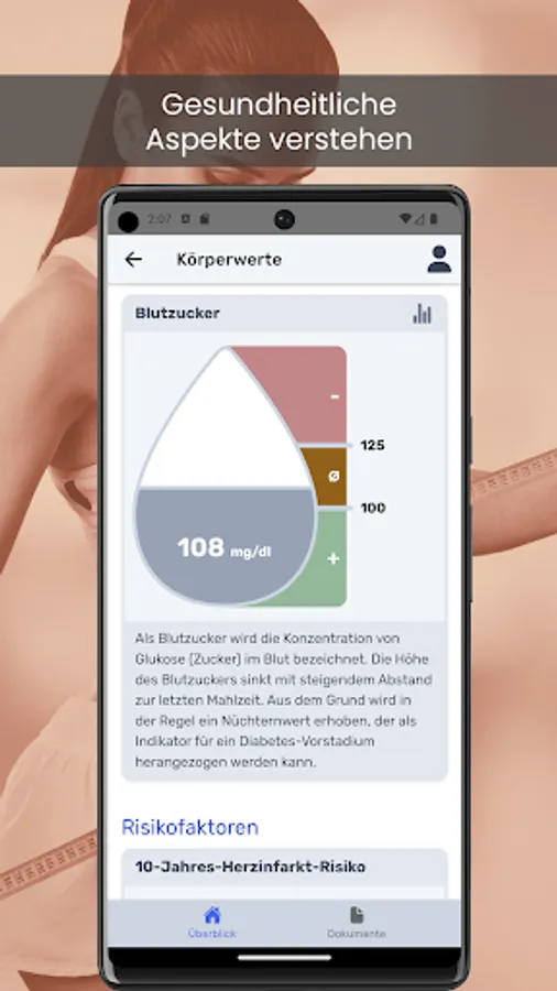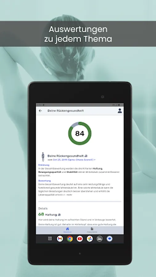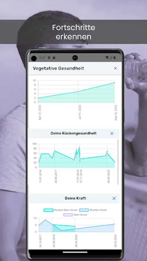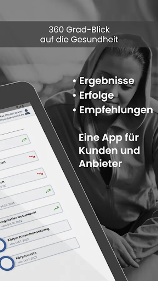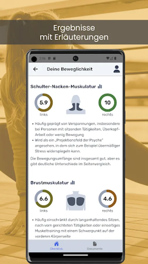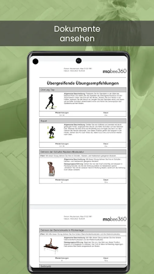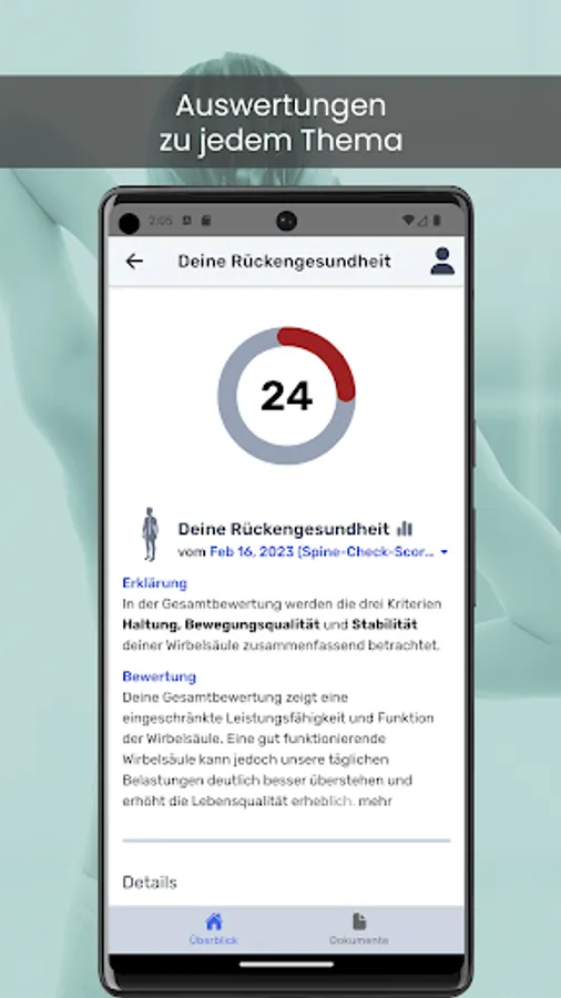 Results, successes and recommendations can be viewed in my mobee® at any time on the cell phone. Comprehensible explanations of the results and particularly clear presentations make the various health topics tangible and improve the understanding of one's own health situation.
