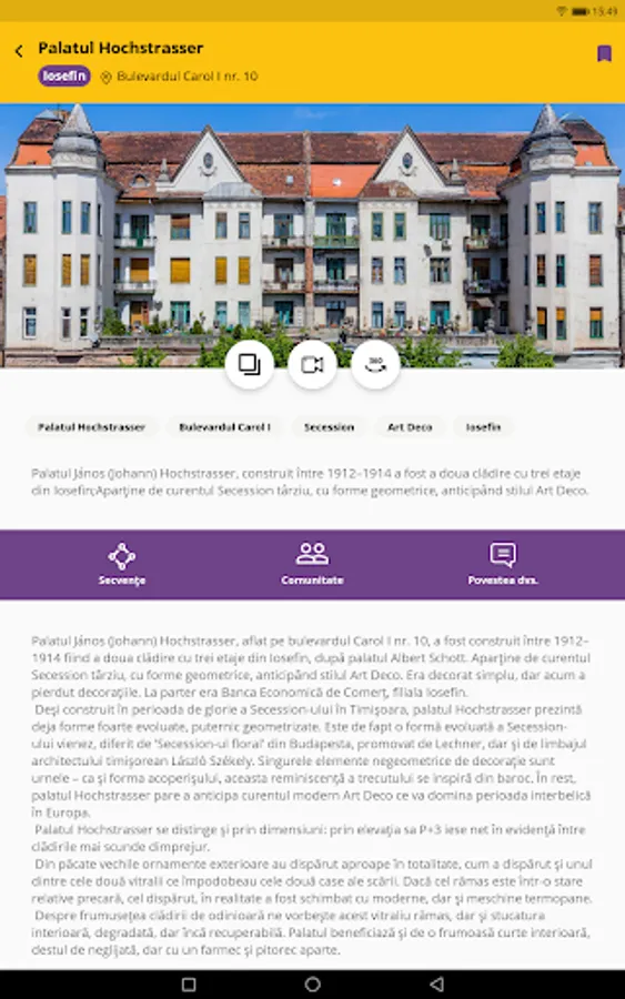 Inspired by history, we reveal Timișoara's digital stories, stimulate the interest of locals and tourists to see, hear and feel Timișoara's past, to co-create its future through the virtual overlap of intangible heritage, the passion that unites the participating generations of cultural heritage.