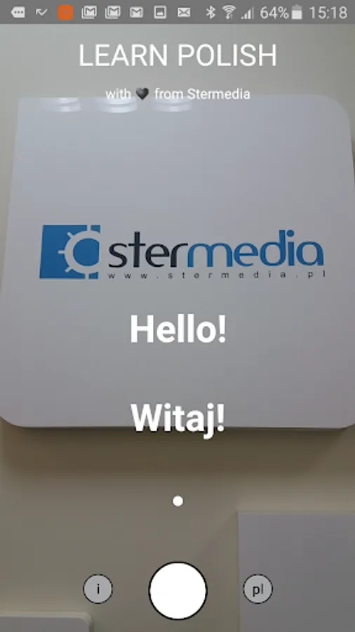 This it the first build of the application. The application is intended to demonstrate the power of deep neural networks (Google Vision API) connected with translation engine (Google Translate).