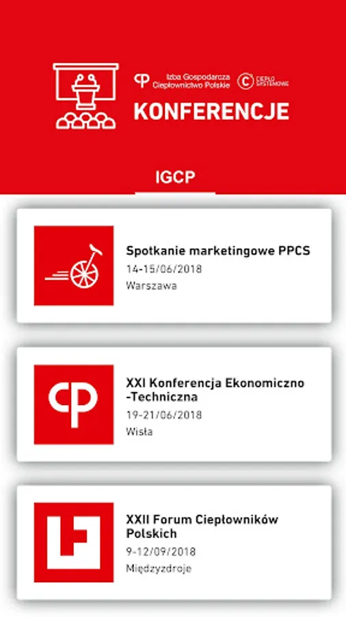 The mobile application supporting conferences and training courses organized by the Chamber of Commerce Polish District Heating is a way for a modern, efficient exchange of information between the organizers and participants of these events. In addition to communicating the current information related to the meeting, also allows you to get feedback from the participants, as well as the interactions among all users.