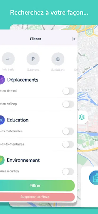 Find all the places and public facilities that welcome you on a daily basis and add them to your favorites to consult their timetables and the events that take place there, get there by public transport and navigate on the interactive map. Museums, recycling centers, media libraries, markets, town halls, and many more to discover. StrasApp also includes exclusive maps such as the locations of glass, cardboard or clothing containers and repair and inflation stations for your bike.