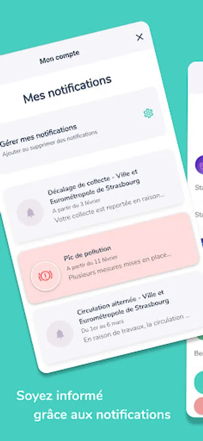 Connect to your MonStrasbourg account to follow the progress of your administrative procedures but also the expiry date of all your media library loans or your resident parking permit. Activate notifications to receive all important information from the community: accidents, waste collection postponement, pollution peak, flood alerts, strong winds, etc.