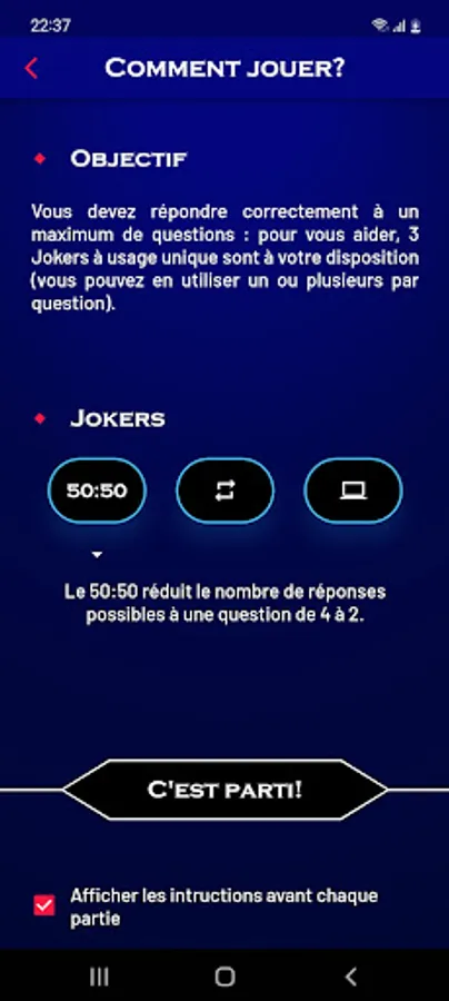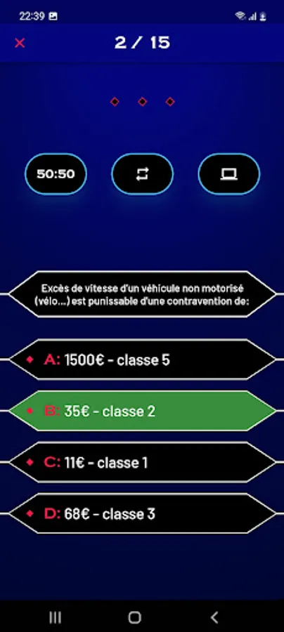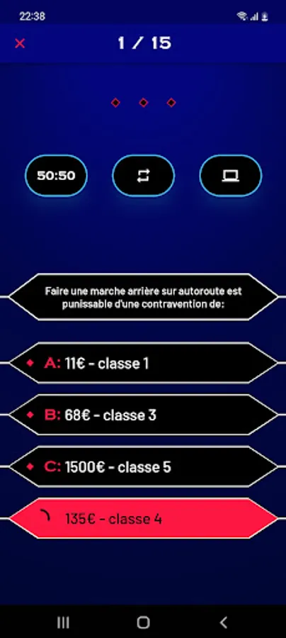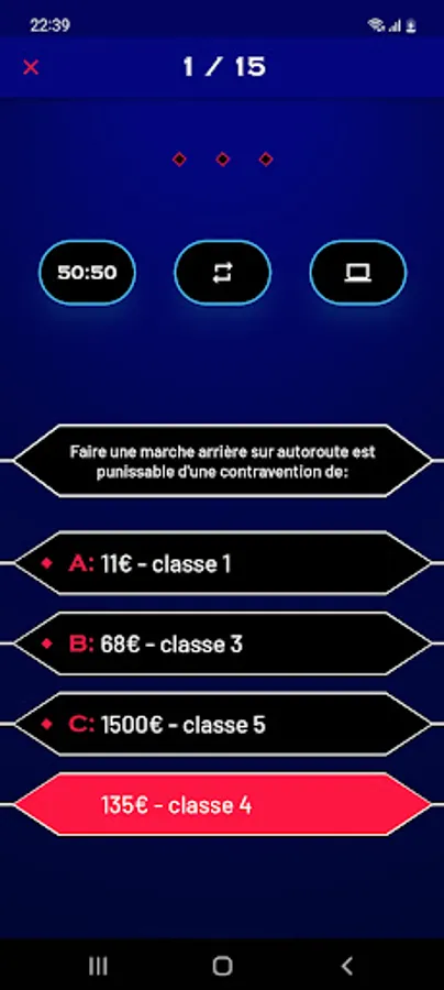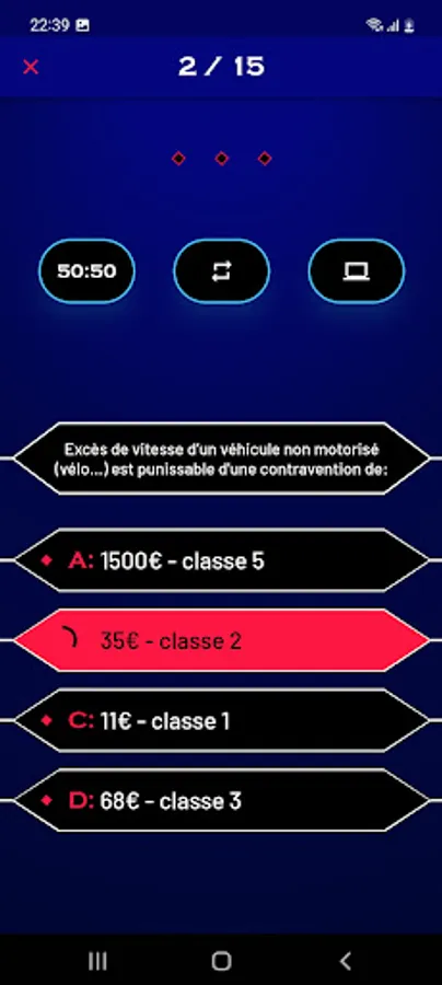 Fortunately, you are not alone and have the right to spare wheels: at any time during the game, you can use one of the 3 single-use Jokers to help you answer a question that could give you a hard time.
