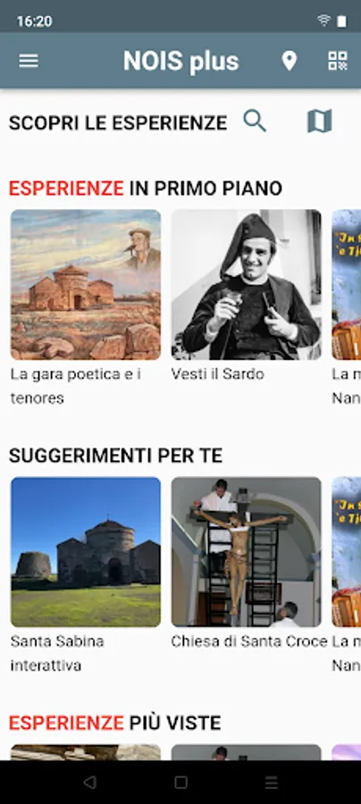 Search by route, by tag or, by activating your position, scan the QR Codes and the experiences you can live near you. You can filter the results according to your interests and follow the suggested routes.