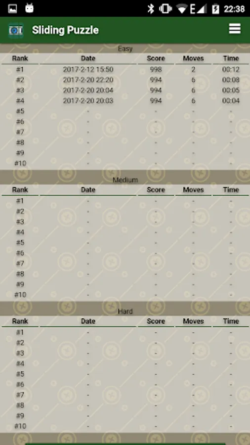 It supports 3 levels of difficulty: easy, medium and hard; respectively with 4, 9 and 16 boxes.