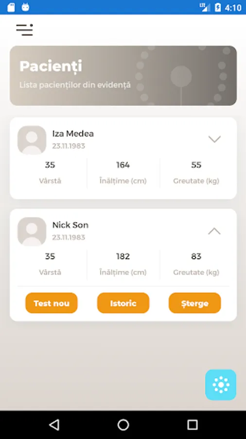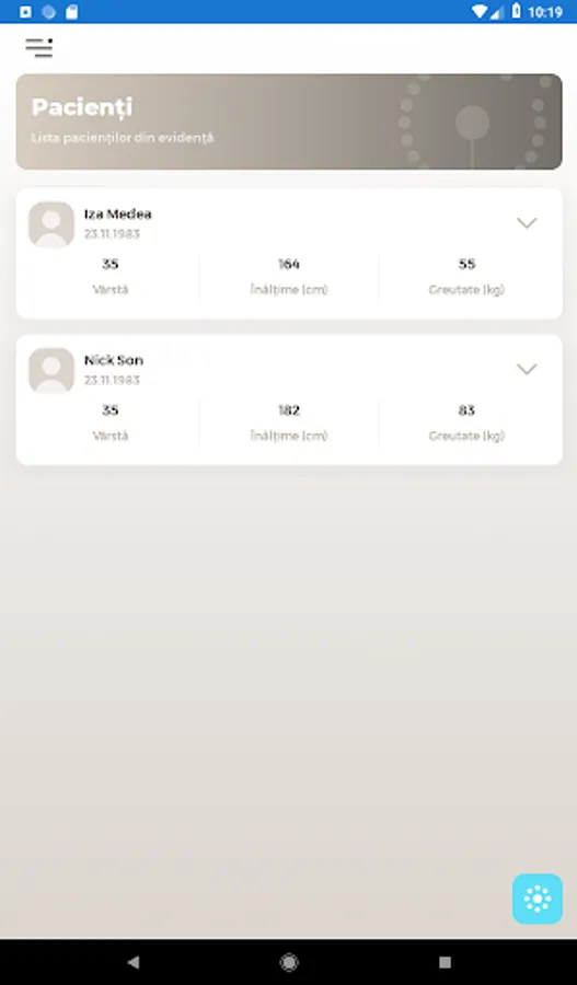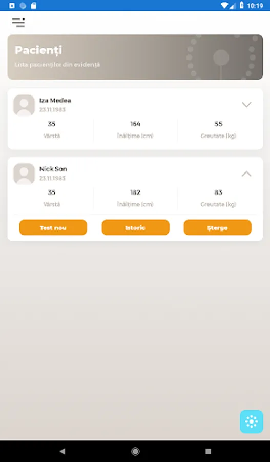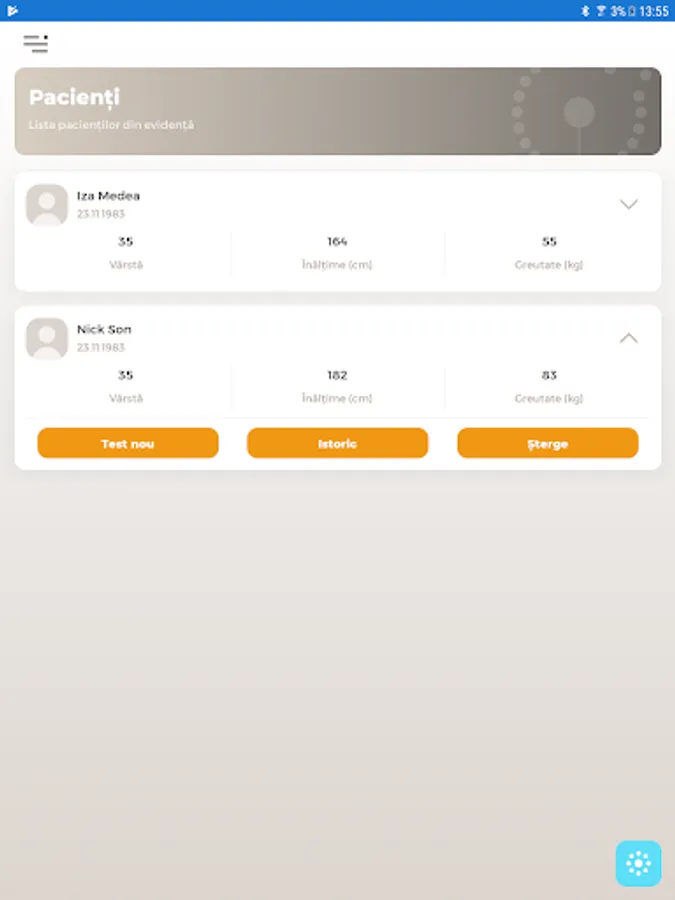 - Addition of patients, including anthropometric data (based on these, the application calculates the target values)