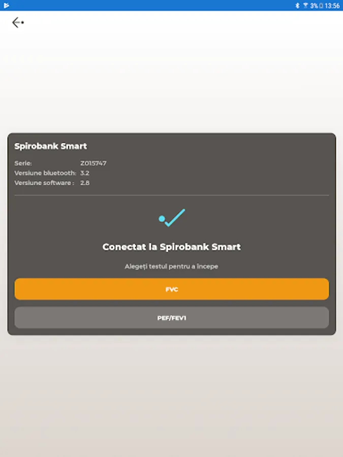 - Choice of turbine type (disposable or reusable), Bluetooth connection to the device and choice of spirometry type