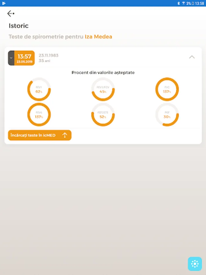 The application works on the basis of the physician's credentials in the icMED together with the Spirobank Smart spirometer (included in the package) and offers the following functionality: