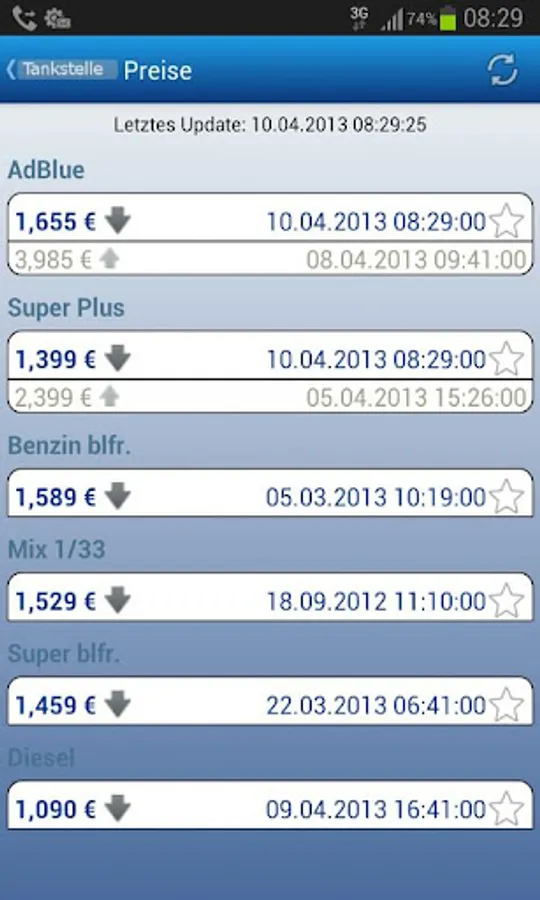 View> Tankstell prices and change