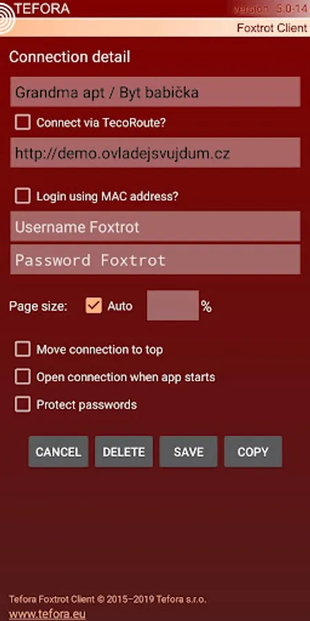 - deep link to a specific page, e.g. http://myfoxtrot.mydomain.cz:60111/PAGE5.XML