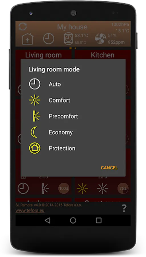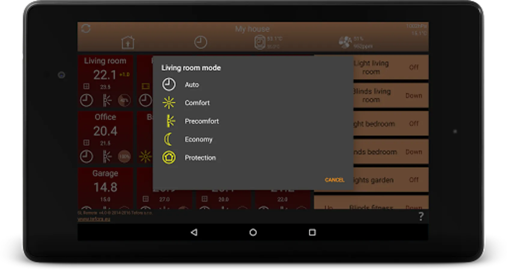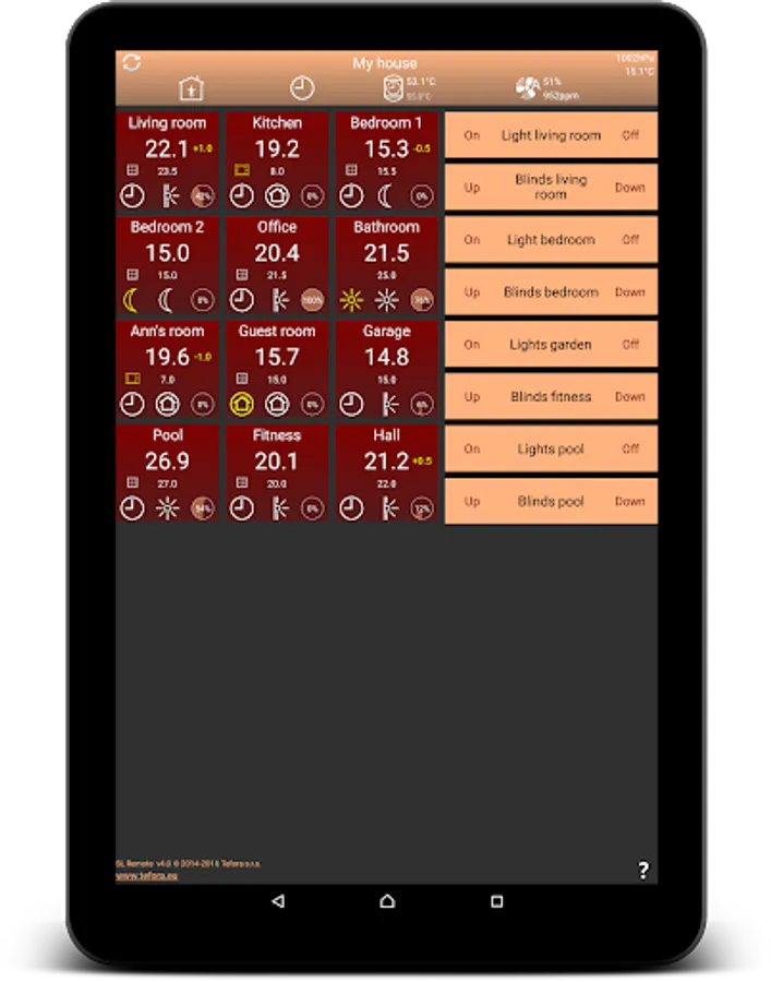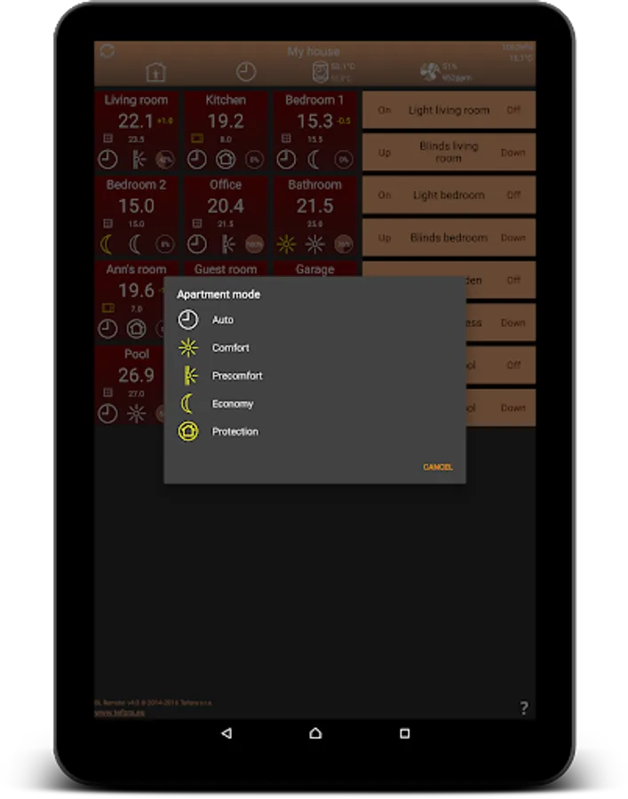 Just tap a room tile to change its cooling/heating, the apartment tile for the whole house or a switching group action to activate it.
