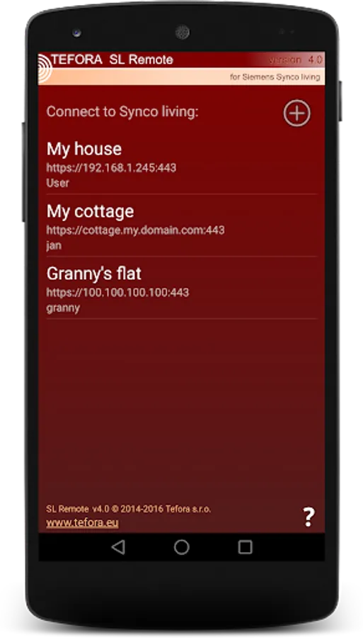 SL Remote connects to Synco living using https protocol (unsecured http is not permitted) via Siemens OZW772 webserver. In case your OZW772 is accessible via internet or you use Siemens Synco IC portal, you can control your Synco living remotely - before returning home from travel etc.