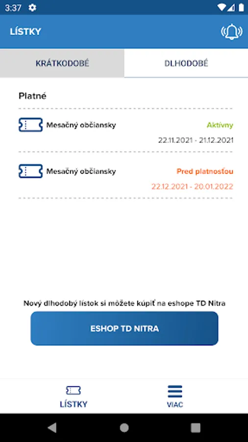 The BUS Nitra mobile application allows its users to purchase travel tickets online, search for the nearest connection, display the location of buses and departures from stops.