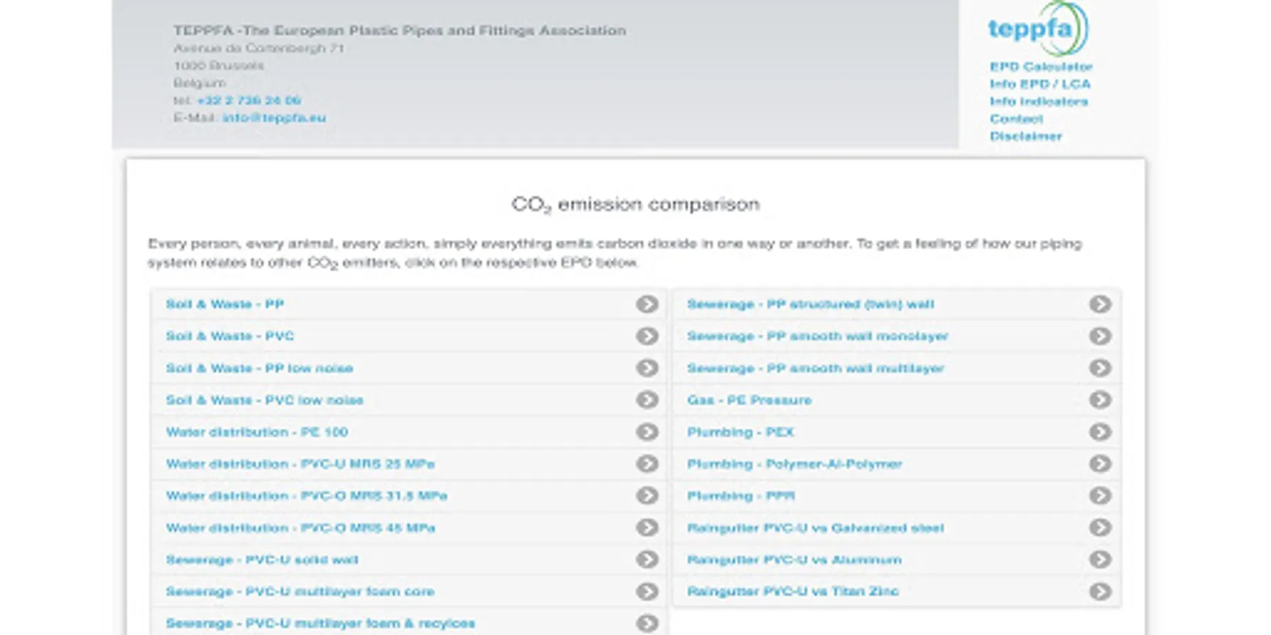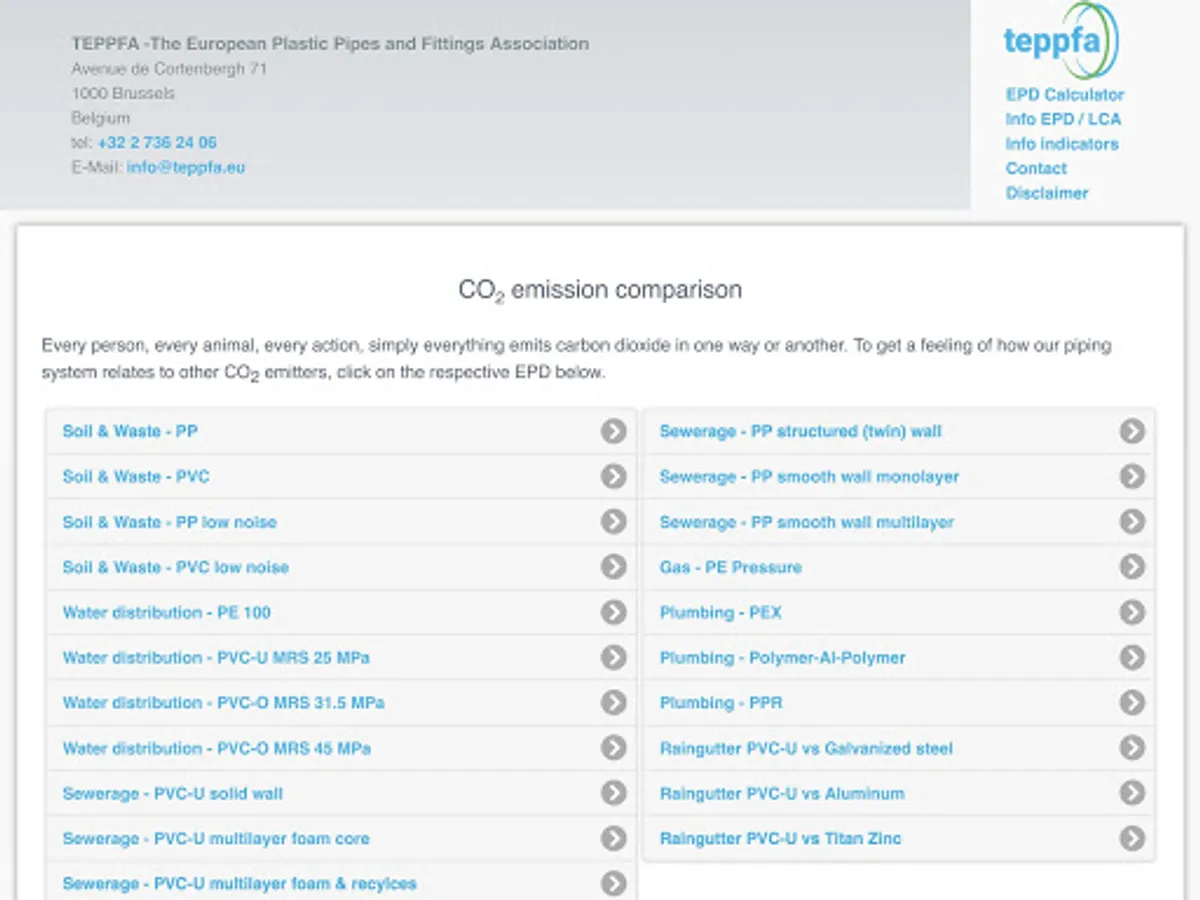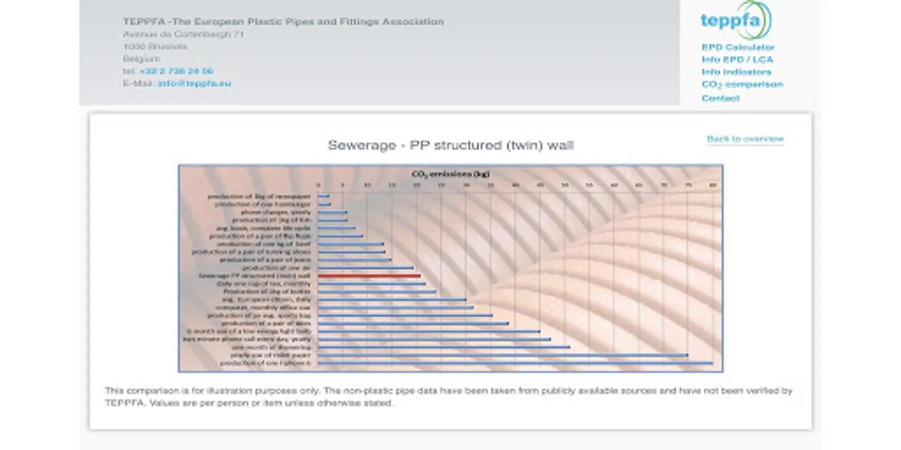Through this app, the European Plastic Pipes and Fittings Association is eager to raise awareness of the value that plastic pipe systems offer for a sustainable future. The app is based on a collaborative study with two independent research institutes VITO and Denkstatt GmbH. Data for the plastic systems is provided by the TEPPFA member companies and is part of the TEPPFA’s voluntary Environmental Product Declarations (EPDs) using the Life Cycle Assessment (LCA) method. Data for the non-polymer alternative materials (ductile iron, copper, concrete) is based on the publicly available figures. This scientific assessment of a comprehensive set of indicators concludes that throughout the life-cycle, from cradle to grave, the environmental impact of the plastic pipe systems is lower for most applications and along the majority of criteria, compared to the alternative materials.