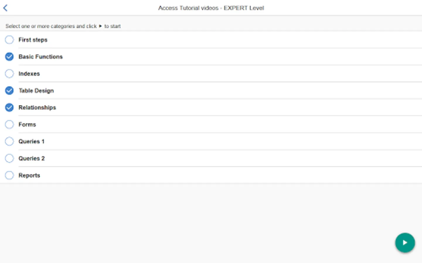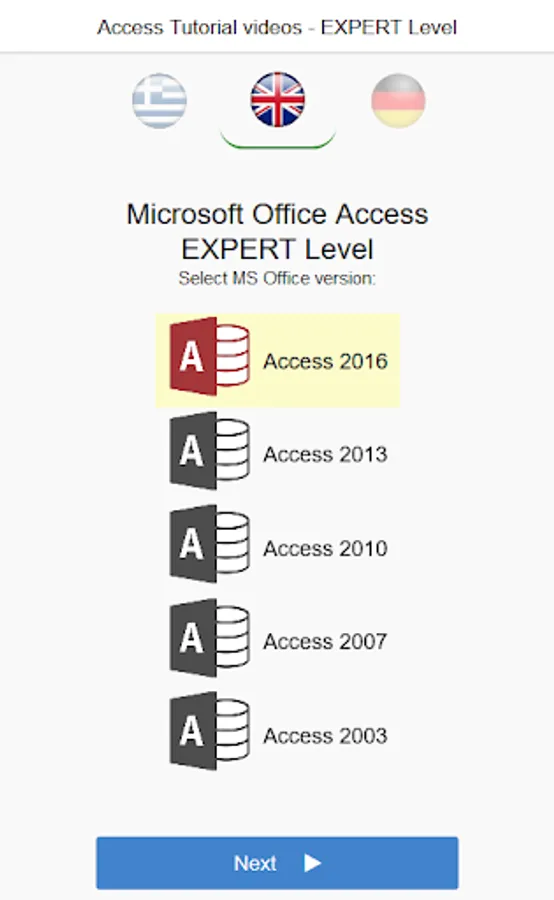 This app provides the users with the opportunity to get an initial picture about the MS-Access Exams (Advanced level), which lead to the respective Certificate acquisition.