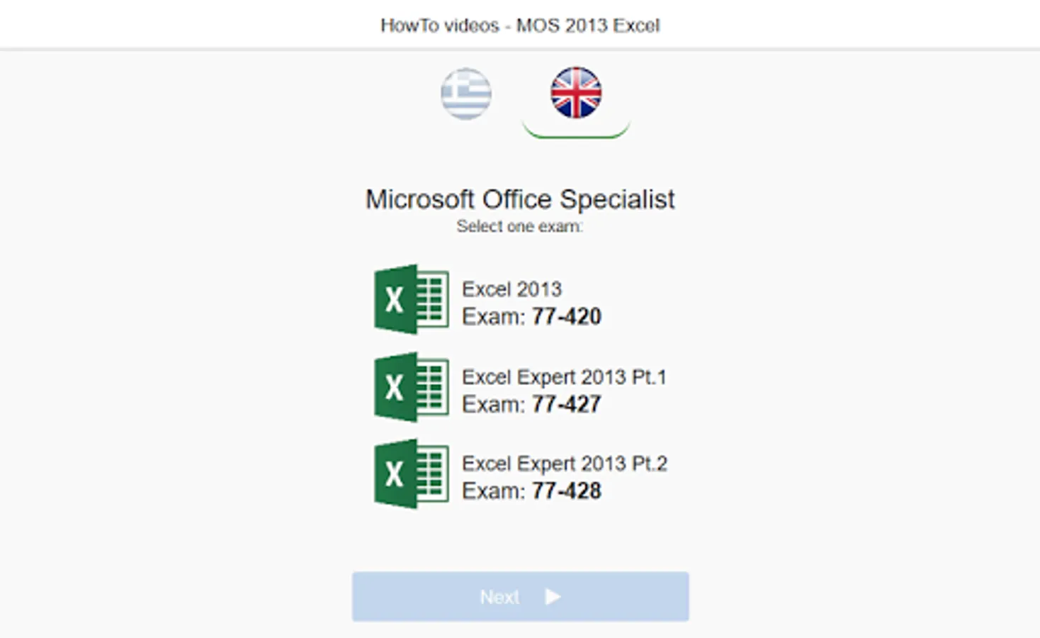 The candidates can access the full training package in order to be able to respond successfully to the Certification Examinations not only for MS-Excel, MOS 77-420, 77-427 and 77-428, but for the rest of the Examinations at the Basic or the Advanced level of Microsoft-Certiport MS-Word, and the Basic level of MS-PowerPoint and MS-Access.