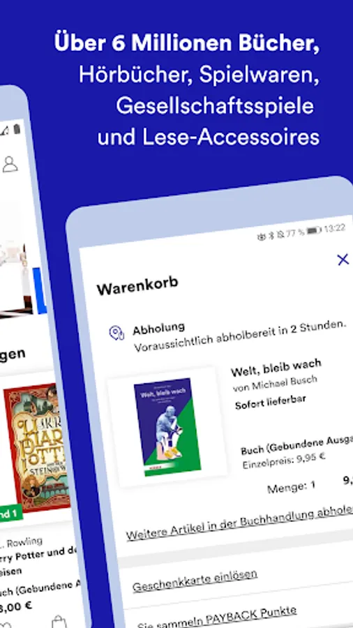 Order over 6 million books, audio books, toys, board games and reading accessories free of charge* in your bookshop or at home - as long as an (audio) book is included in the order.