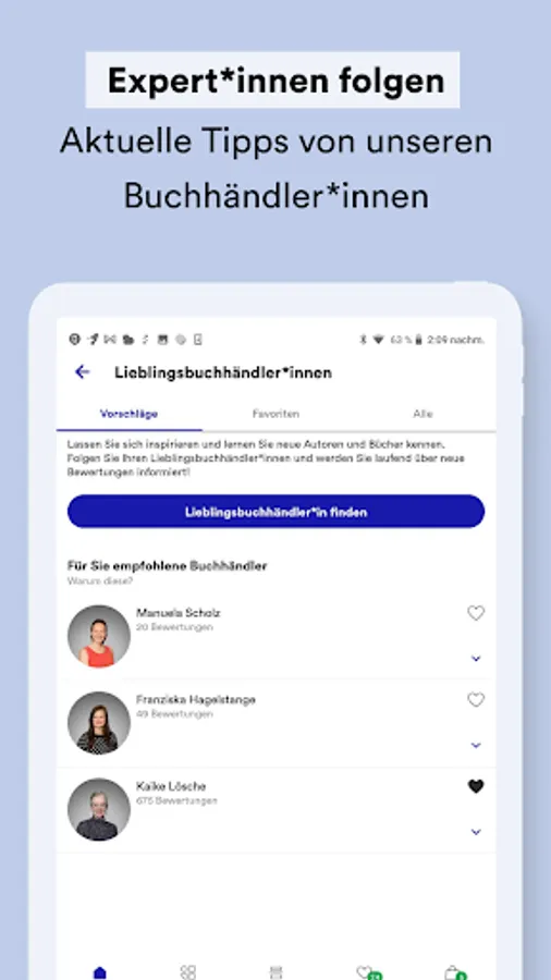 Follow our booksellers and receive exclusive book tips by push message. You'll never miss the latest bestsellers in your favorite genre again, and you'll receive exciting insider tips from the book and e-book scene!