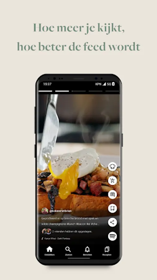 Daily Chef's cooking app has an inspiring feed full of food videos. Swipe through dishes and see or save what you like. Skip what you don't want to cook. This way DailyChef learns which food you like and it starts to feel like a recipe app that is made especially for you.