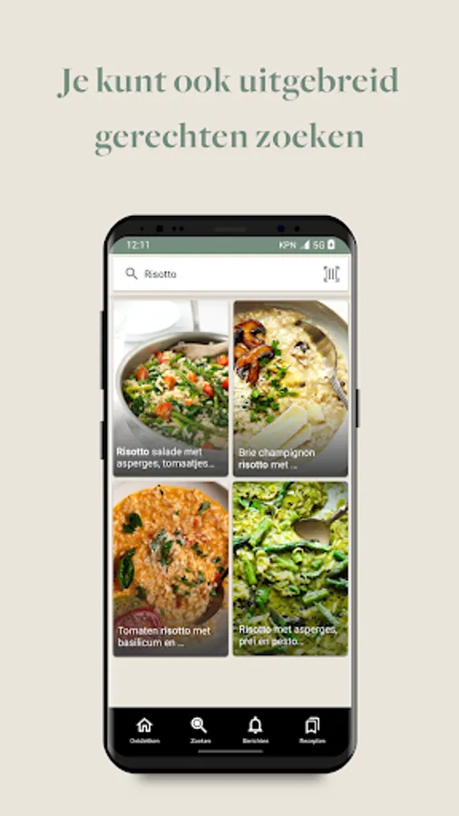 If you already know which recipe or with which ingredients you want to cook, use the extensive search function. You can search for dinner, lunch or drinks, for example. But also on pasta, salad or hamburger. Or, on words like vegan, vegetarian or meat. You can also scan the barcode of your ingredients and you will see all recipes that contain these ingredients.