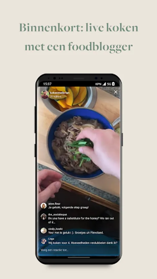 Cooking enthusiasts will soon be able to cook live with their favorite food bloggers. Note: This feature is new and therefore still in the testing phase. Want to be one of the first to try this out? Send an email to jim@theappfactory.eu.