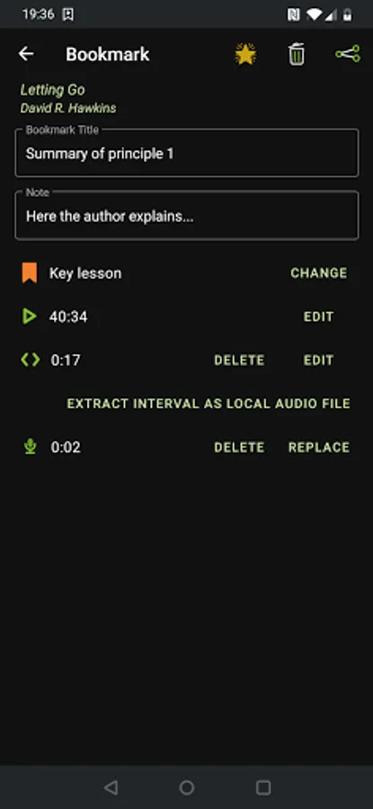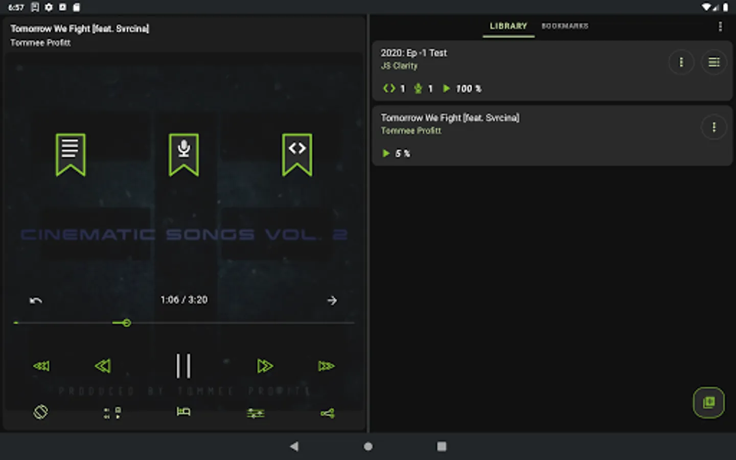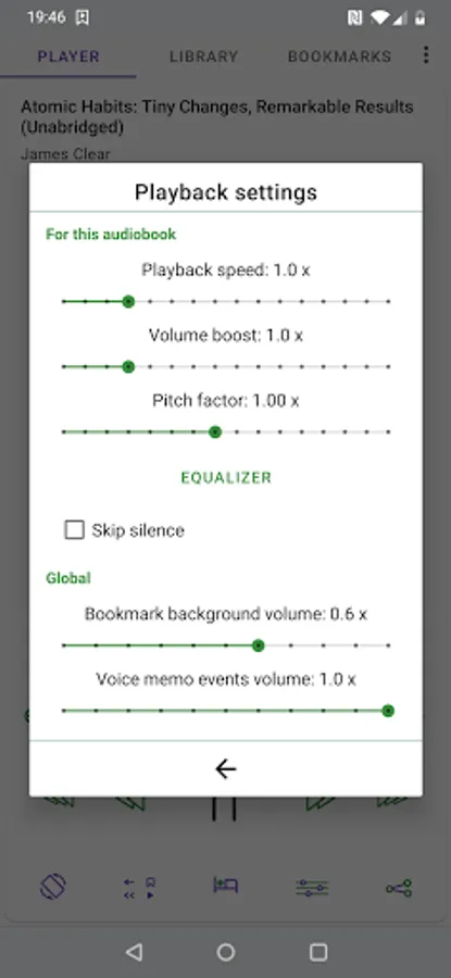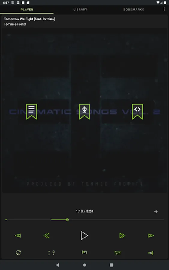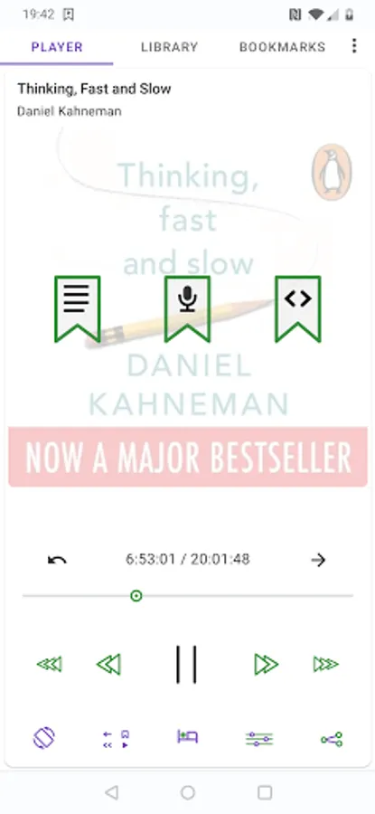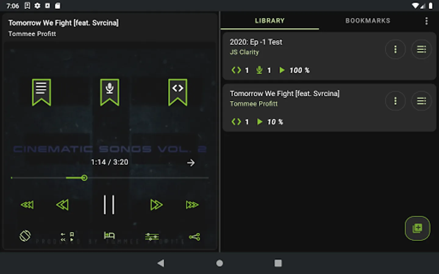The audiobook player allows taking voice memos, text memos and interval bookmarks while listening to an audiobook. The aim of the app is to offer the most convenient ways of saving bookmarks and ideas so you can review them later.