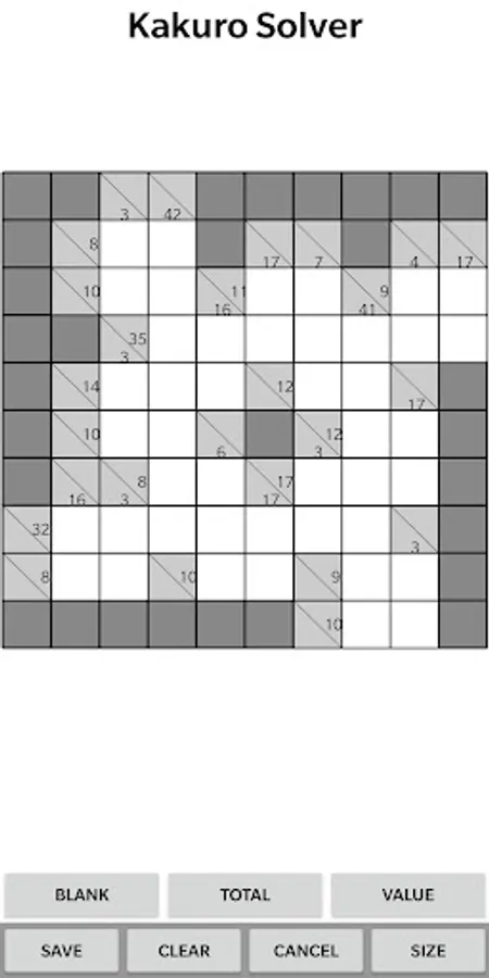 Kakuro solver helps you solve Kakuro puzzles of any size and shape up to 255x255.
