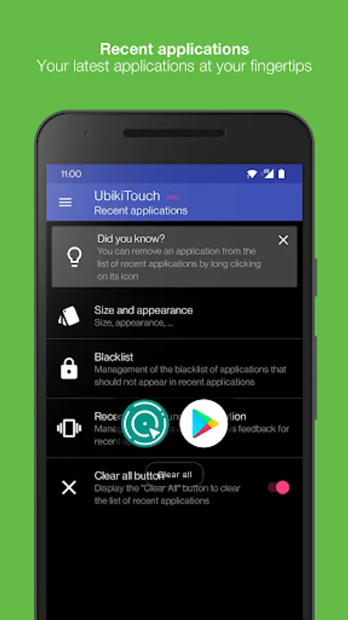 • Access to Recent Applications menu