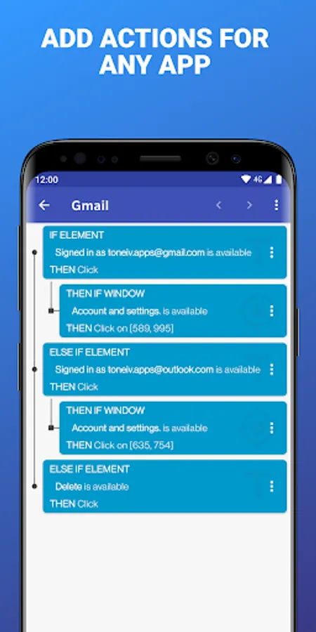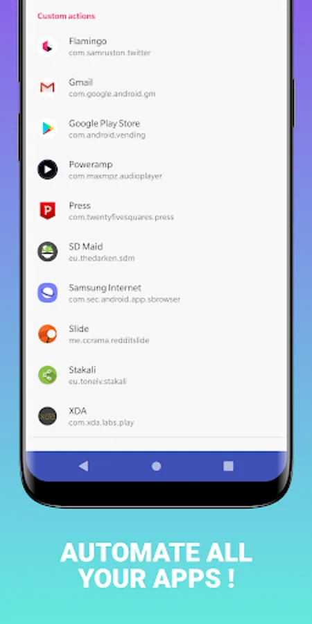 You can define an action for each screen of your favorite applications: press a button, select an item, make a swipe, etc. Even better, you can sequence actions to perform more complex tasks.