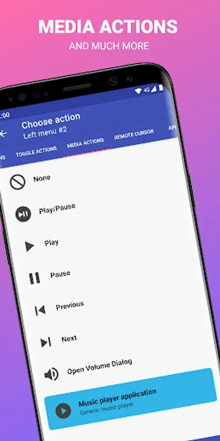 • Access to more actions, the ability to launch an application or a shortcut