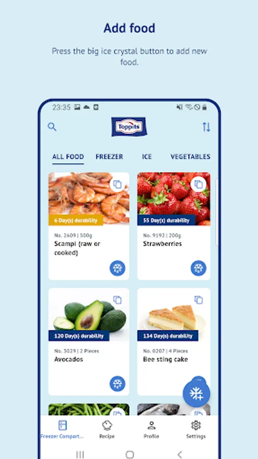 Nobody likes to throw away food. But sometimes we forget what we have in the freezer until it’s too late. The Toppits® Foodsaver app lets you know when it's time to defrost your food, ensuring nothing goes to waste.